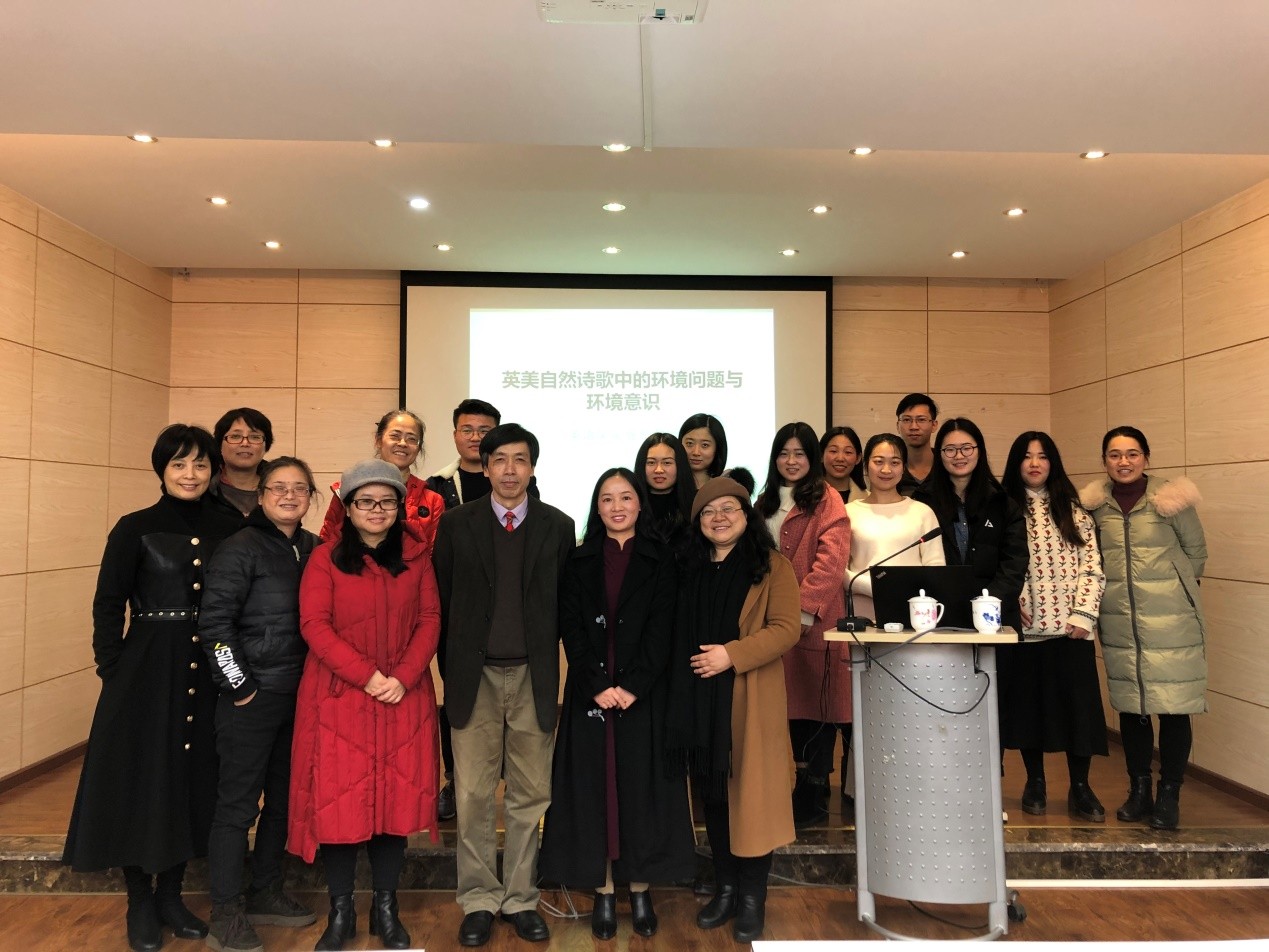 五楼报告厅作了主题为“英美自然诗歌中的环境问题与环境意识”的讲座。本次讲座由我院毛凌滢教授主持,我院老师及研究生参加了此次讲座。