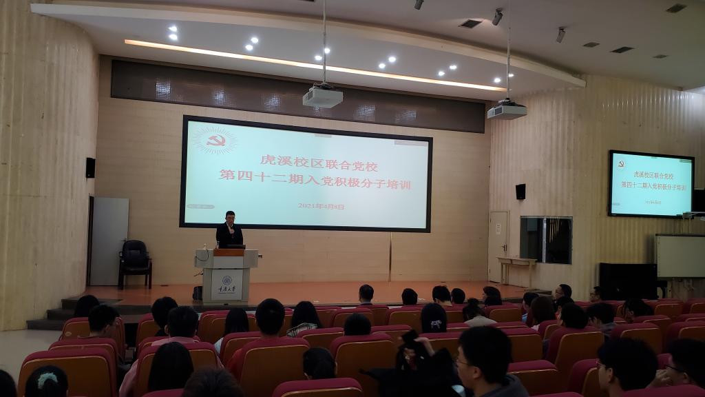 2021年4月8日下午,虎溪校区联合党校第42期入党积极分子培训开班仪式暨课堂教学第一讲在综合楼126隆重举行,来自跳蛋视频