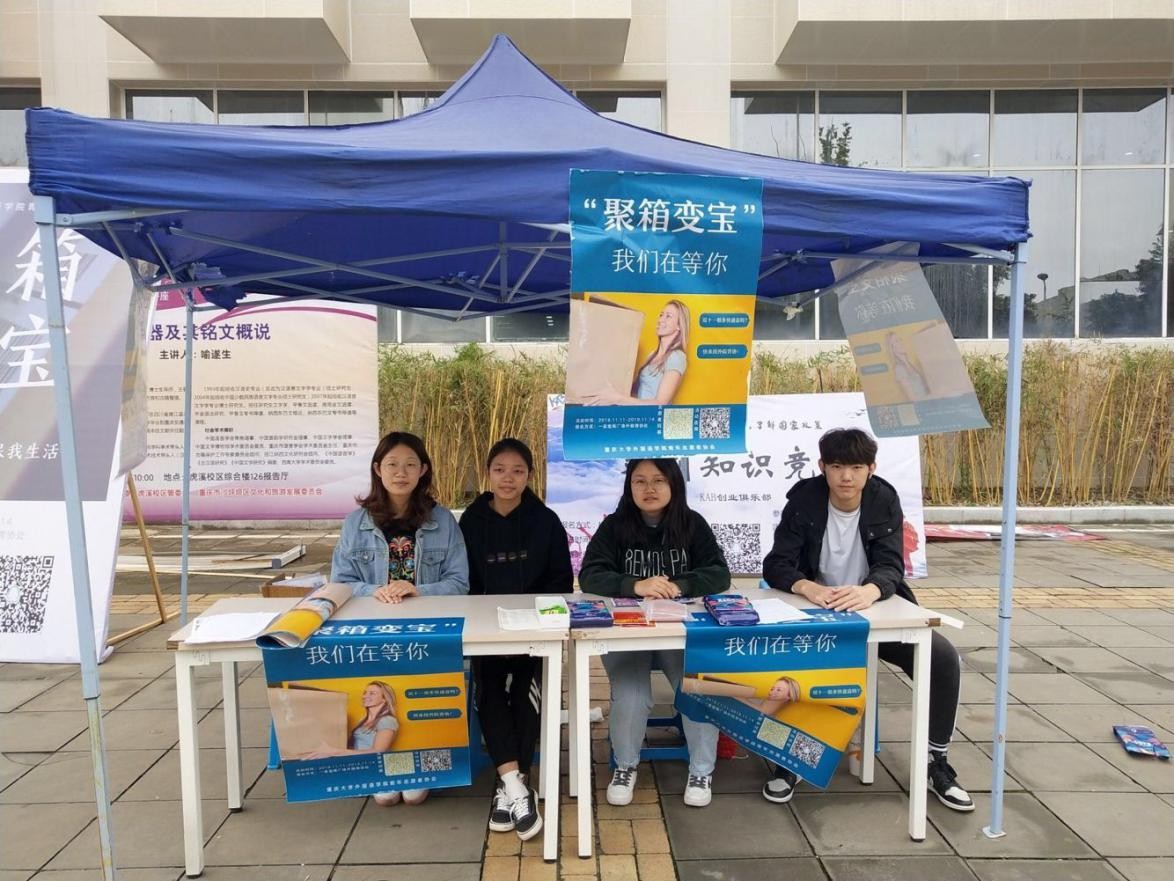 青年志愿者协会举办的“聚箱变宝”快递纸箱回收活动在虎溪校区举行。本次活动,共有300余人次参与,累计回收快递纸箱400余个,活动达到了预期效果。本次活动的开展,进一步增强了同学们的环保意识,让保护环境、建设社会主义生态文明的理念更加深入人心。
