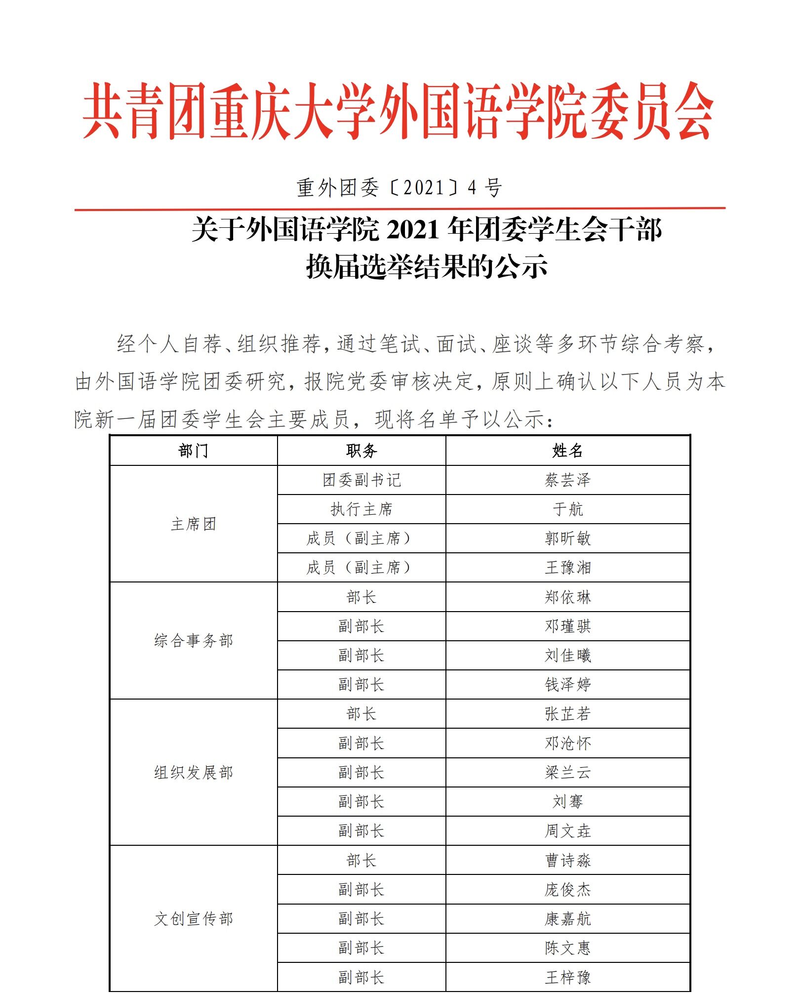 关于跳蛋视频 2021 年团委学生会干部 换届选举结果的公示