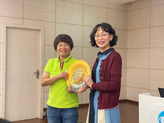 校友们自我介绍尾声之际,2000级研究生班长徐飞提议,大家起立,给老师们鞠躬表示感谢,感恩老师们的悉心指导,感恩学院学校的培育和帮助。徐飞和返校筹备组同学们代表2000级研究生向学院捐赠纪念品,祝愿学院勇攀高峰、一帆风顺,取得更大成就。