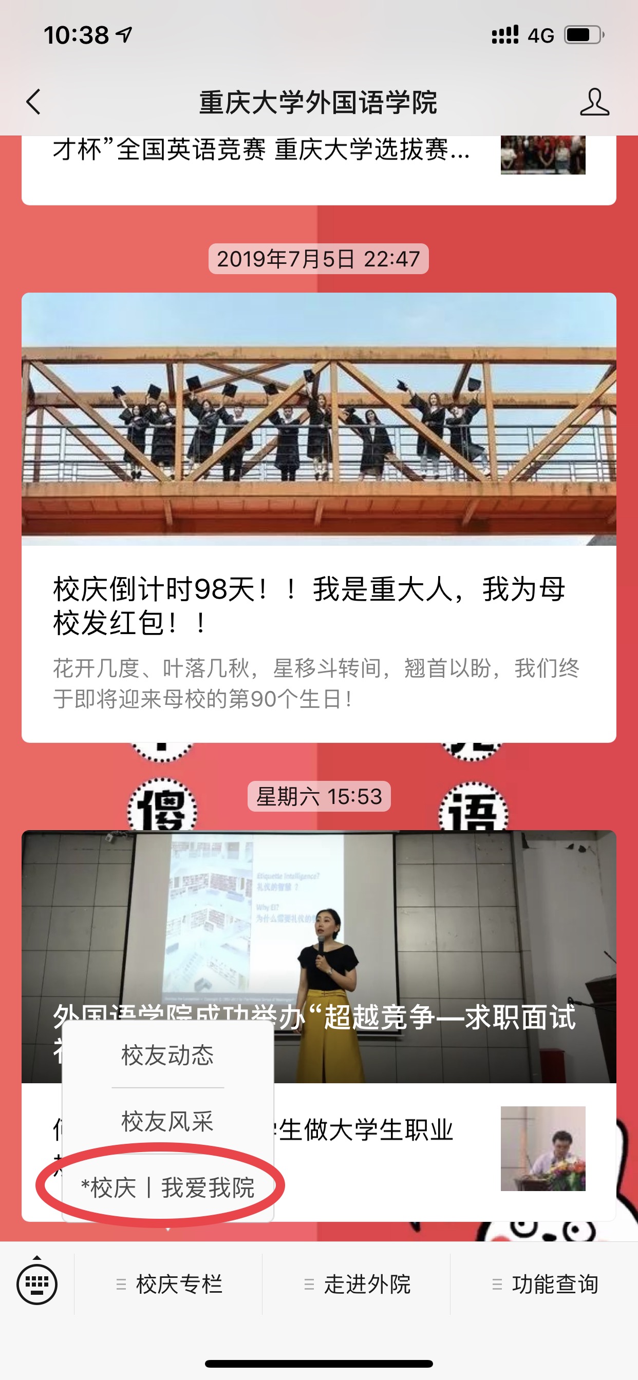 ”微信公众号。点“学院资讯”,选“*校庆丨我爱我院”,选择:我要支持,选择:跳蛋视频