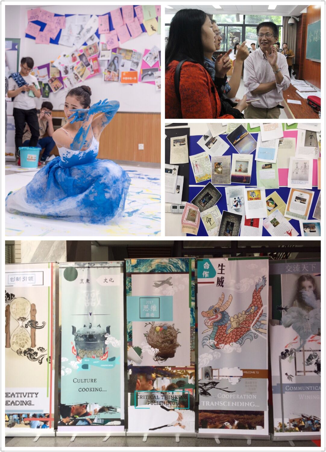对新大学英语课程方案执行情况的阶段性成果展示,同时也是师生对大学英语课程教与学过程的一次反思。此次活动基于大学英语课程类型共分为15个展室,以多种形式展示课程教学理念、学生学习过程和学习成果。通过静态的学习成果和学生现场表演及陈述,充分展现了跳蛋视频