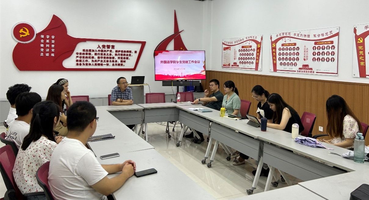 在学院楼105党员活动室召开了本年度第三次学生党建工作会议。会议由学院党委委员、组织员刘培老师主持,学院党委副书记、纪委书记魏世平老师,学院党委委员、学办主任朱洪召老师,翻硕支部书记游振声老师,汉硕支部书记杜瑾老师,本科生支部书记张茹老师,辅导员张文静老师,各学生支部书记、支委委员参加了会议。