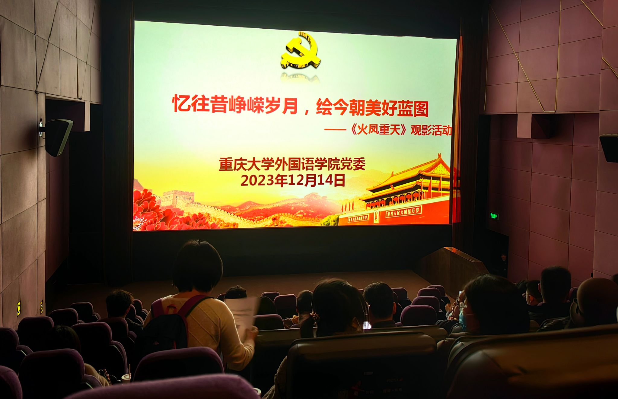 党委组织教职工党员前往沙坪坝UME电影院观看了抗战历史题材电影《火凤重天》。学院党委副书记魏世平,副院长李小辉、王江,五个教工支部50余位党员教师及入党积极分子参加了观影活动。