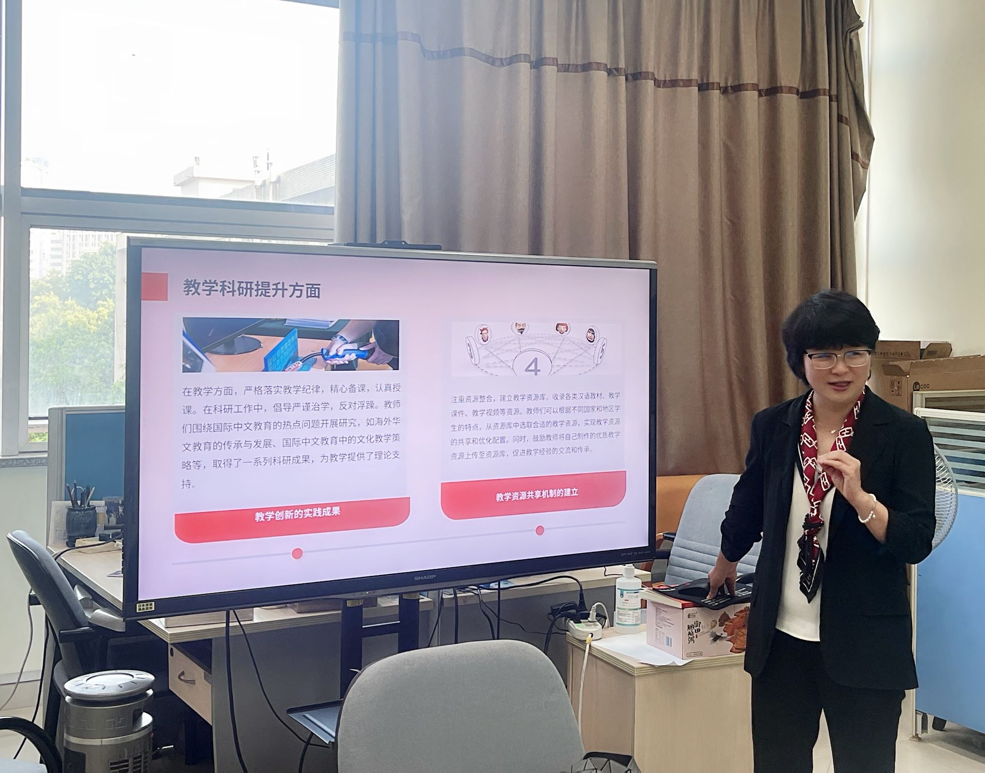 李小辉从学习关于加强党的作风建设重要论述的收获感悟出发,围绕国际中文教育发展、国际人才培养、教师成长等方面,强调了党的作风建设的重要性。她从教学科研提升和日常工作优化两个方面梳理了贯彻落实中央八项规定精神的成效经验,指出违反中央八项规定及其实施细则精神的危害,提出了持续深化纠治“四风”问题、推动改进工作作风的实际举措。