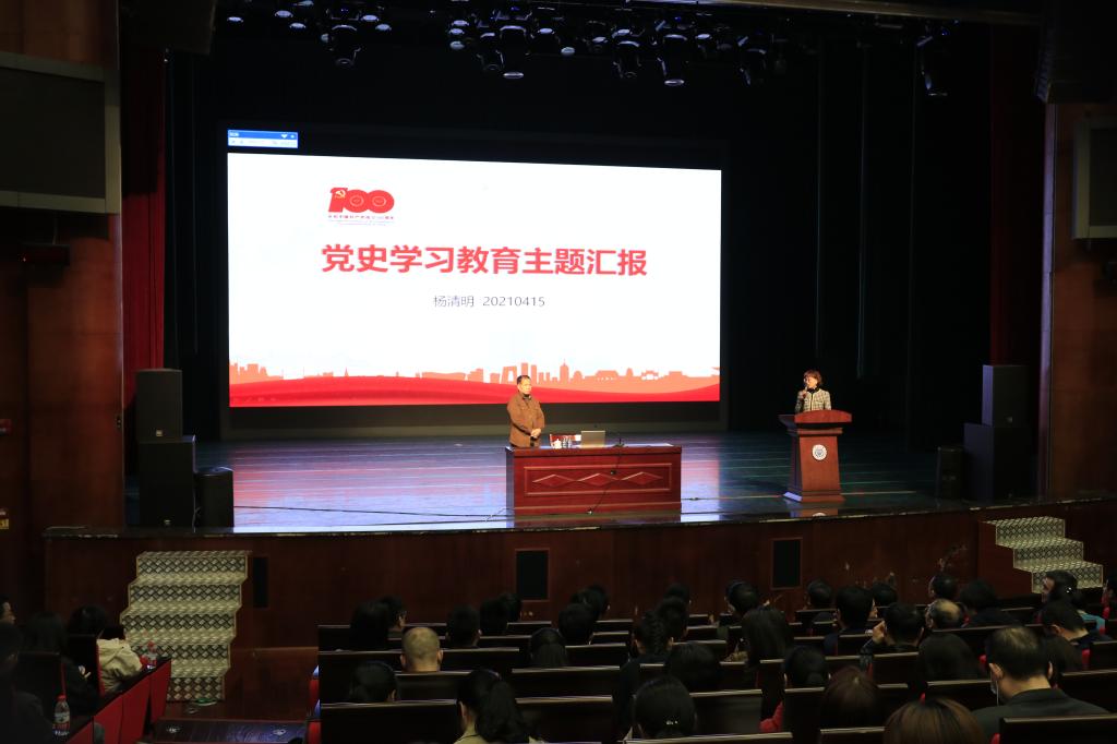 杨清明教授首先介绍了中央党史学习教育动员大会和重庆市党史学习教育大会的相关情况,以“历史”和“历史观”两个概念为切入点,引导大家以唯物史观正确地看待历史和党史,反对历史虚无主义。接着,他从“深入学习领会习近平总书记关于党的历史的重要论述,充分认识开展党史学习教育的重大意义”,“认真研读党史基本著作,全面了解中国共产党百年奋斗的光辉历程和历史性贡献”,“深刻把握开展党史学习教育的重点”和“开展党史学习教育,要学懂弄通做实习近平新时代中国特色社会主义思想,增强‘四个意识’、坚定‘四个自信’、做到‘两个维护’”四个方面深入浅出地讲述了党史学习教育的意义、重点及要领,帮助全体党员快速理解习近平总书记在党史学习教育动员大会的重要讲话精神,深入了解了党团结带领人民实现了中华民族从东亚病夫到站起来、从站起来到富起来、从站起来富起来到强起来的三次伟大飞跃,深刻理解了中国特色社会主义是党和人民奋斗、创造、积累的根本成就。