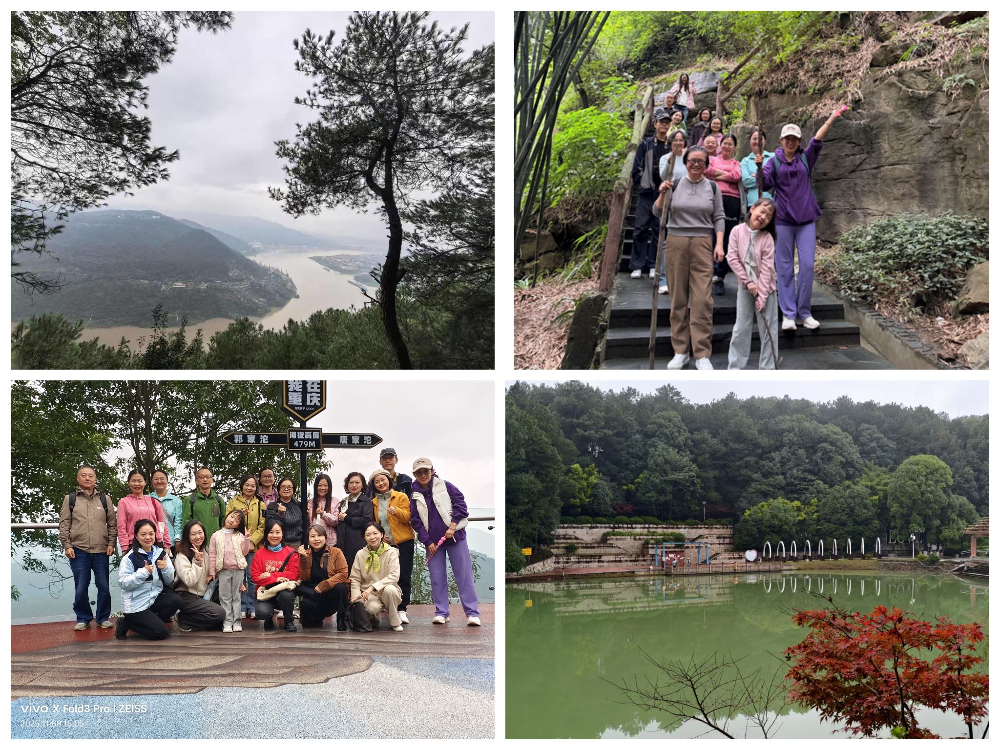 午餐后,众人前往峡江观景台步道开启徒步。步道沿山体蜿蜒而下,绿植繁茂、空气清新,漫山秋意扑面而来。大家相互结伴、缓步前行,畅谈教学科研心得,分享生活点滴,途中互帮互助、彼此鼓励。历经2个多小时的徒步,顺利抵达步道下口,既锻炼了身体,又饱览长江与山林交融美景,更拉近了心与心的距离。