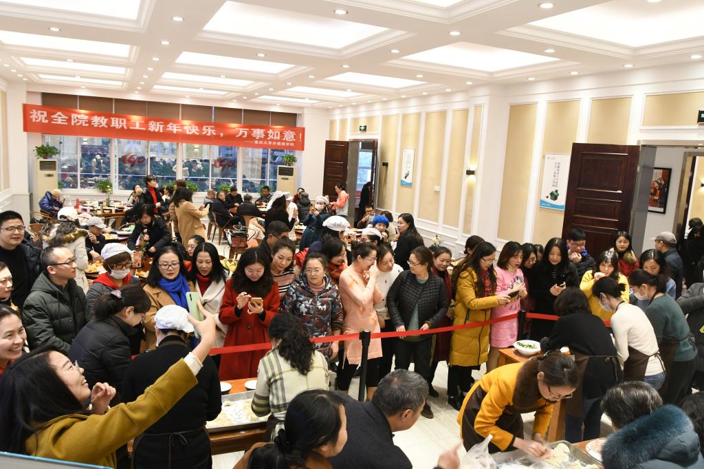 比赛之后,各单位、小组围坐一起,畅叙欢谈,交流一年之所得,展望来年之美好。待热气腾腾的饺子上座,大家分享自己亲手的劳动成果,比赛之激烈、欢乐,皆入味中,老师们于凛凛冬季中感受到一份特别的温暖。