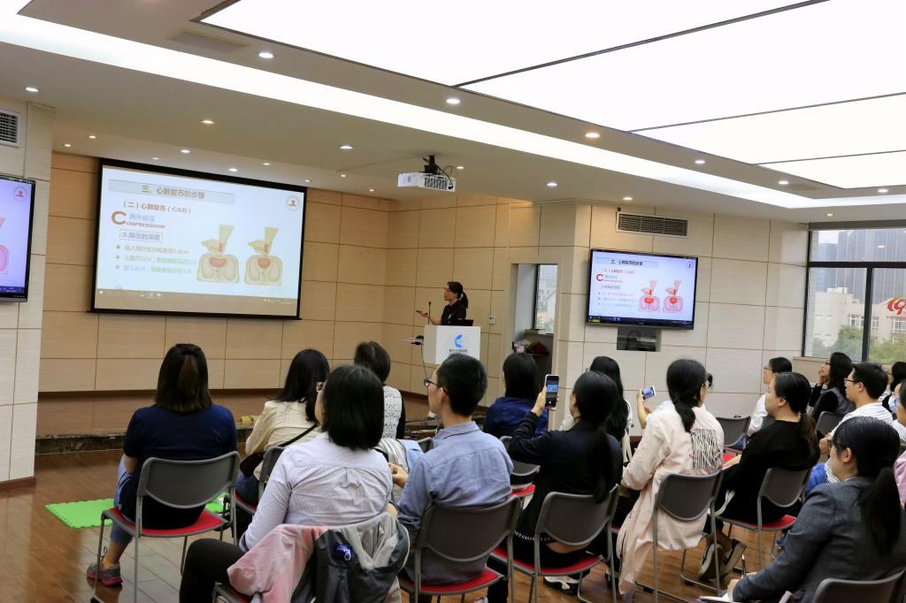 10月10日上午9:00,校工会文体部梁丽娜老师对此次培训的相关事宜做了简要介绍。接着,方艳老师讲解了心肺复苏的步骤、自动体外除颤器的使用。然后,龙清艳老师用生动的语言、真实的案例,对气道异物梗阻急救方法进行了详细讲授。讲解过程中,在两位老师和重庆医科大学第二临床学院应急急救先锋志愿者学生的指导帮助下,参训教职工相互合作、反复练习,直至掌握心肺复苏的动作要领和步骤。