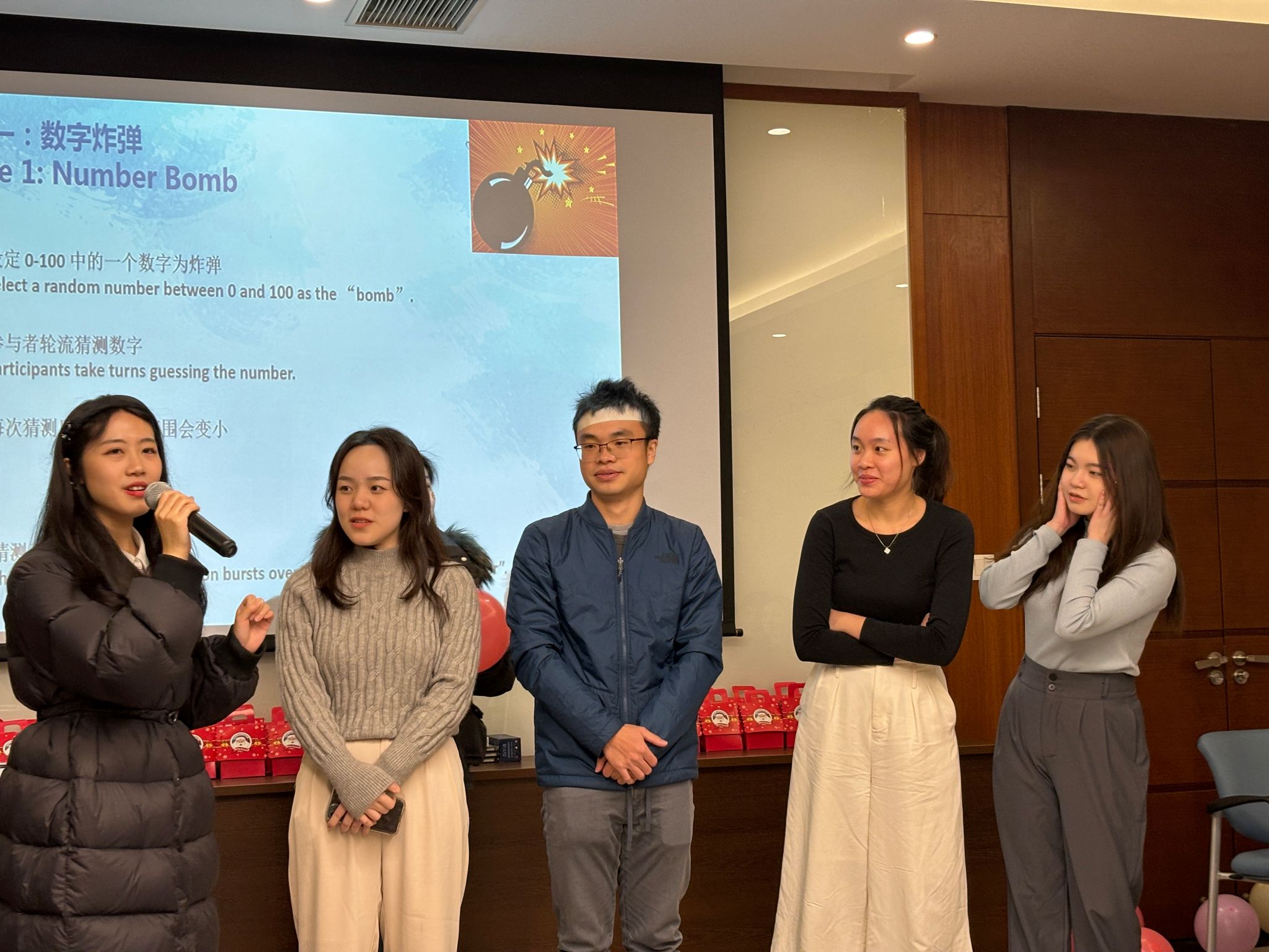在游戏环节,中新双方同学都积极参与。在首轮“数字炸弹”游戏中,新加坡同学首轮出战就猜中了“炸弹”的数字,带动了全场的游戏氛围;在“人名猜猜猜”游戏中,中新学生分别扮演哆啦A梦、柯南、李小龙等知名角色,丰富的动作语言表达和紧张刺激的竞技氛围让全场都投入其中。