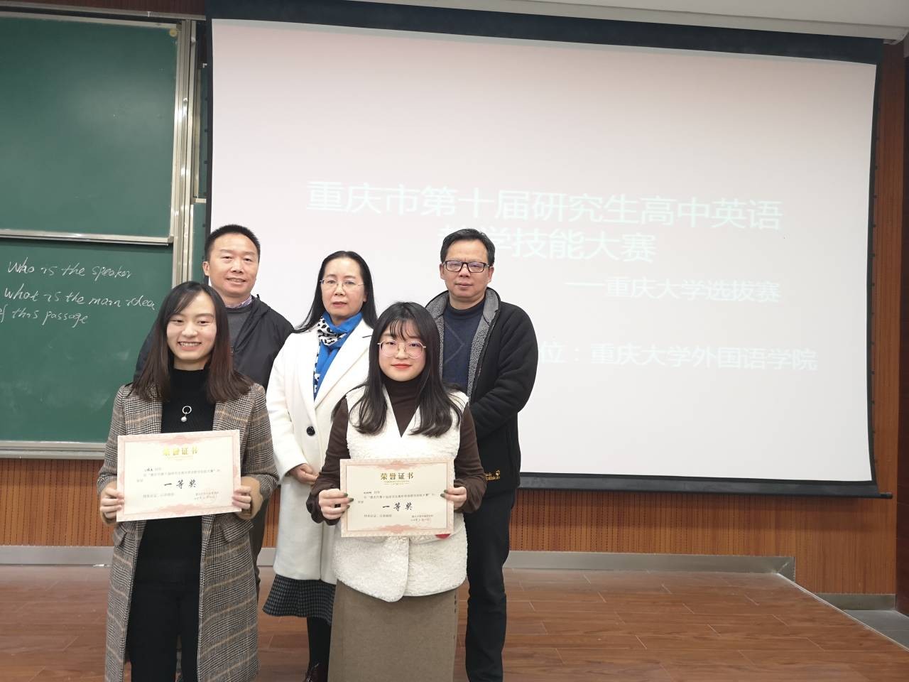 参加重庆市第十一届研究生高中英语教学技能大赛的总决赛,预祝他们在决赛上再创佳绩。
