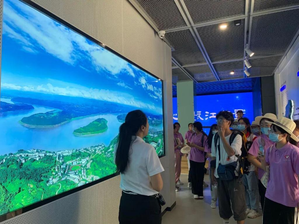 实践团成员首先走进一楼的“三峡库心·长江盆景”规划展厅,通过观看大量的图片与视频,了解忠县的发展历史与建设成就。看到展厅里忠州八景的图片,八景各具特色,让人惊叹。美丽忠县,在一步步地发展建设中,正变得越来越迷人。