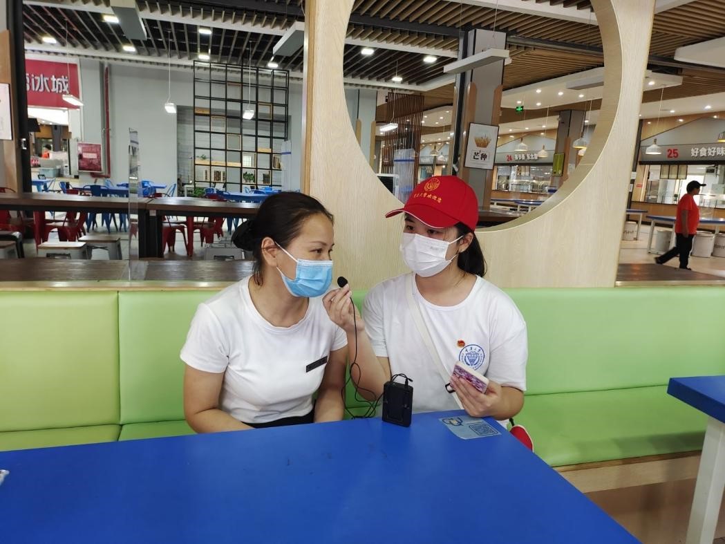 党委书记欧玲、党委副书记魏世平、团委书记汪俣婧等领导老师进行了院校的防疫政策咨询。除此之外,实践团还对2020级本科学生王颖和校园内第一食堂的食品安全员叶春明等工作人员进行了随机采访,从各个层面深入了解跳蛋视频