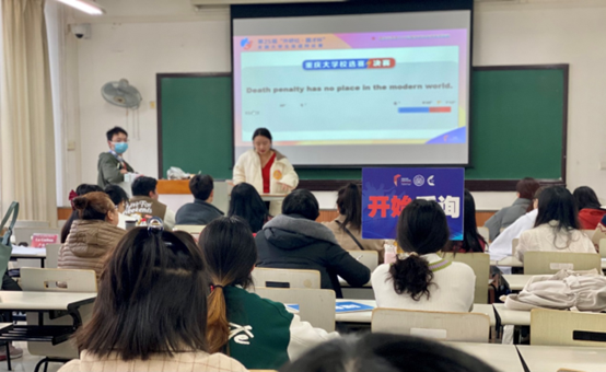 、学生外语演讲与辩论协会承办,吸引了全校21个学院46个专业的50支队伍参赛。
