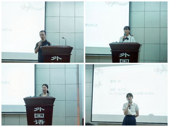 日语系主任陈爱华,以及日语系老师周宇娇、金香梅、周璞、马颖瑞,外教乡原章等6位老师担任打分、提问评委。日语系王萍老师、李中平老师作为嘉宾出席。日语系学生郑喆祺、刘文婧担任赛事主持人。