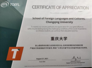 雅思考点获得教育部考试中心和英国文化教育协会联合颁发的“2020年全国雅思特别贡献奖”;10月,托福考点获得教育部考试中心和ETS联合颁发的“2021年度托福考试贡献奖”。获得这些荣誉,离不开学校各级领导的关心和支持,以及团队全体工作人员的辛勤付出。