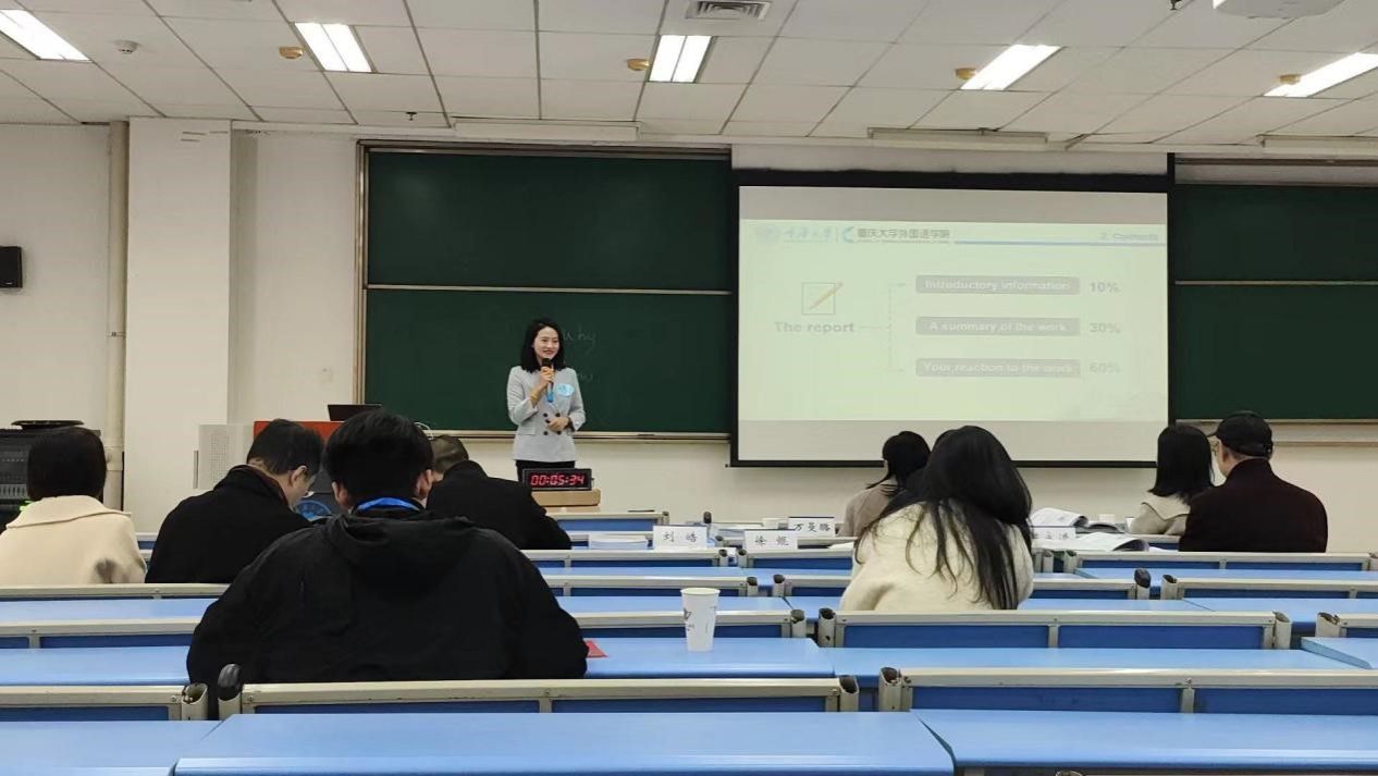 郑尧老师以《英语思辨与写作(1)》课程中的“读书报告的写作”为题,讲解了英文读书报告的重要性以及写作技巧,生动呈现了读书报告的语步,并通过启发式教学与案例分析解析了读书报告的语言特点。姚倩老师以《普通话与中国的语保工程》为题,从“生态”出发,引出“语言濒危”的现实问题,并通过精彩的讲解让听众深入了解了这一主题。姚老师指出普通话推广成功的同时,方言消失成为不可忽视的问题。两位老师的教学展示目标明确、逻辑清晰、语言流畅、内容丰富,受到了专家们的一致好评。