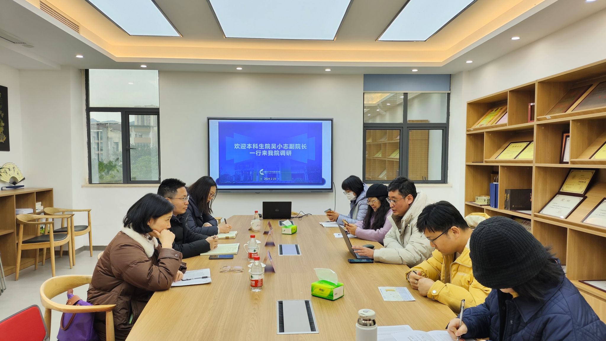 2024年2月23日下午,本科生院吴小志副院长、林津如、周佳老师来我院调研专业系本科教育创新人才培养工作。跳蛋视频 王江副院长、专业系负责人、教学管理人员参加了此次会议。