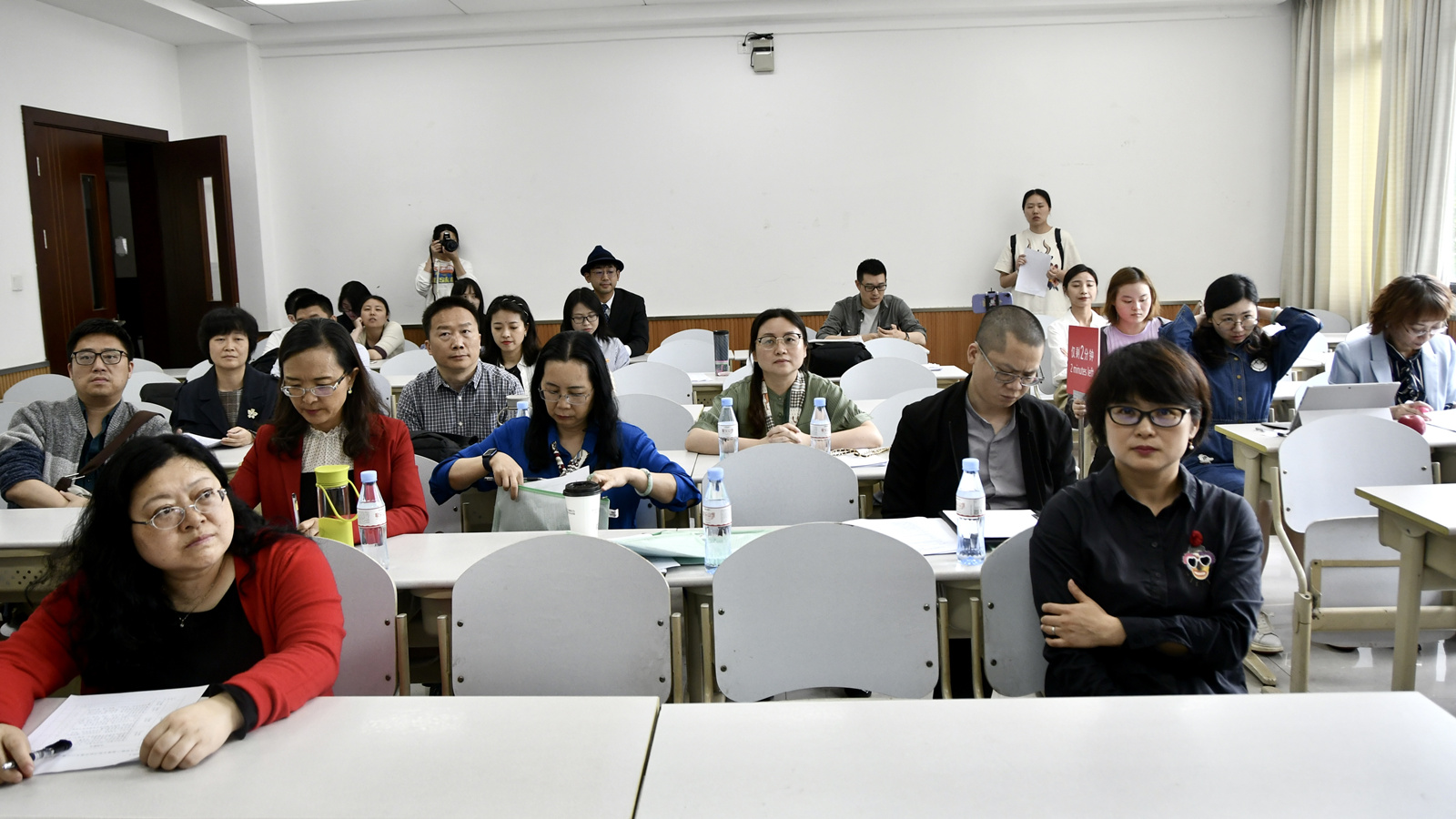 本次比赛有14位青年教师参加, 其中包括11位近年来入职的青年博士。比赛分两组同时进行,采用了无生上课的方式。每位老师进行了20分钟的教学展示,并提交了教学大纲,教学设计等材料。在教学展示环节,参赛教师们声情并茂,挥洒自如,有的诙谐幽默,有的沉稳大气,有的节奏明快,有的如潺潺流水,润物细无声,有的引人深思,给人以启迪。各位老师虽然风格各异,但是都以扎实的基本功,赢得了好评,内容准备充分,教学设计合理,目标明确,讲解细致,专业素养过硬。学院将推荐优秀教师代表学院参加“跳蛋视频