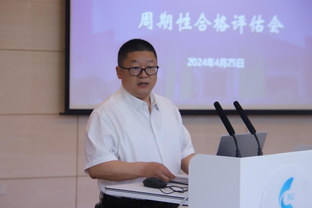 院长莫启扬代表学位点进行工作汇报,他分别从基本情况、人才培养、社会服务三大方面进行阐述,指出评估期间学位点取得的成效和存在问题,以及未来学位点将围绕人才培养这一核心任务,提升教学质量、推进科研创新。他郑重承诺,本次评估中的所有材料以及数据真实、准确,学院将全力配合专家做好调研工作。欧玲书记对各位专家的莅临指导表示感谢,并期望学位点能够凝练专业特色、强化学科优势,制定明确的未来发展目标与切实可行的保障措施。