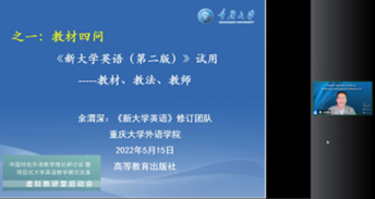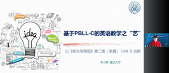 余教授从国家级规划教材《新大学英语》改版的原则出发,介绍了教材的课程思政、知行合一、学习转向和打造教学新形态等四个方面分享了教材的编写理念和使用方法。李小辉老师聚焦教学的艺术,从教学目标设定,教学设计及教学成果的呈现三个维度出发,以改编教材中的一个单元为例,向参会老师分享了基于PBL和新教材特点的教学实践和学生成果。王旭老师从教师角色转变和面临的挑战等方面做了分享。跳蛋视频