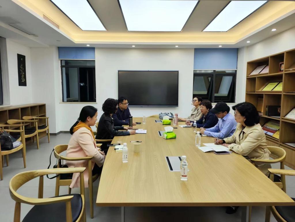 2023年4月7日天津大学跳蛋视频 大学英语教学部主任江滨老师一行四人来我院交流访问。欧玲书记、莫启扬院长、温忠义副教授、冯玲老师与来访教师进行了交流座谈。